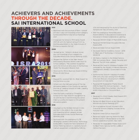 • Adjudged as the 3rd Best School in India Future 50 Schools Shaping Success list by
